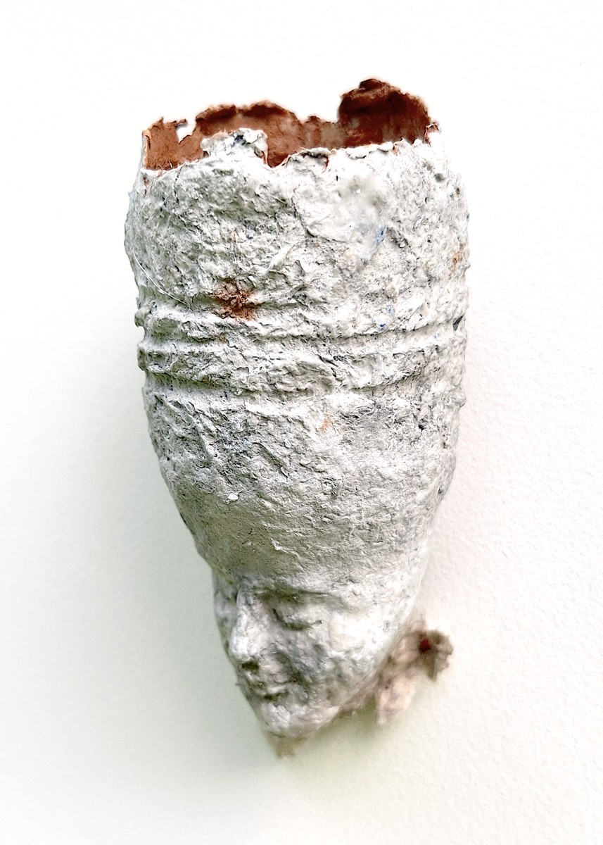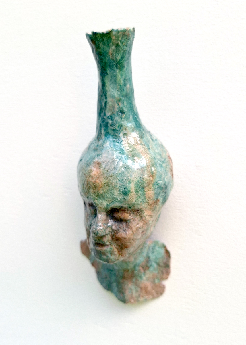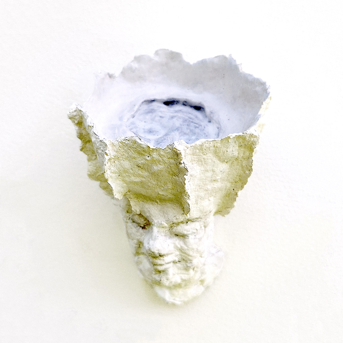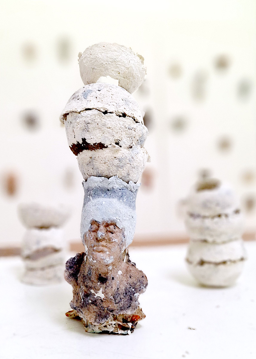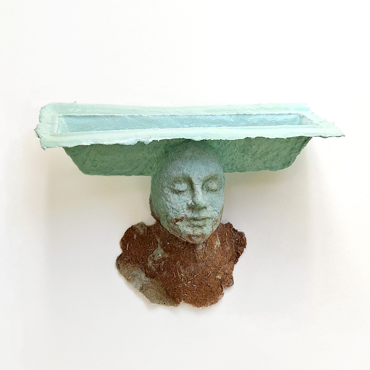 My installation ‘Water Bearers’ consists of miniature heads, each carrying a vessel of water in its own unique way. Paper and water are essential elements in the creation of these figures.