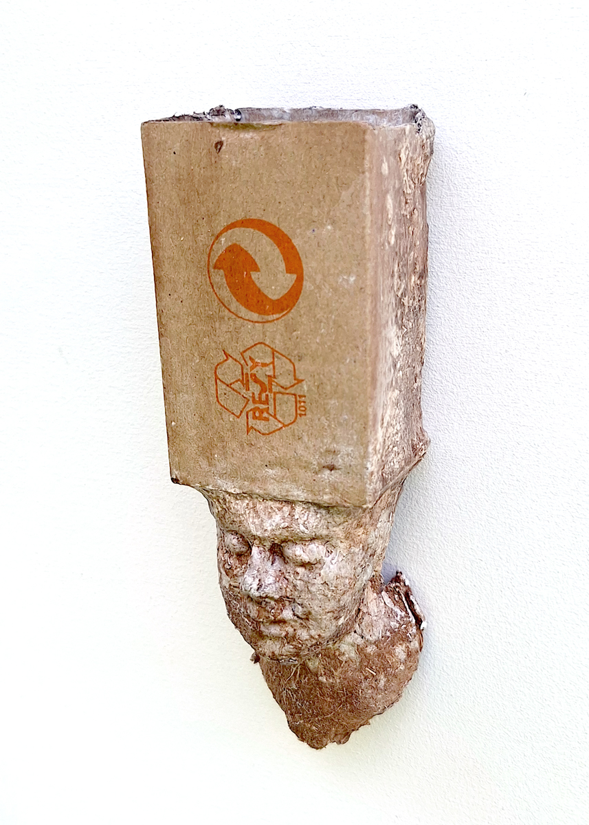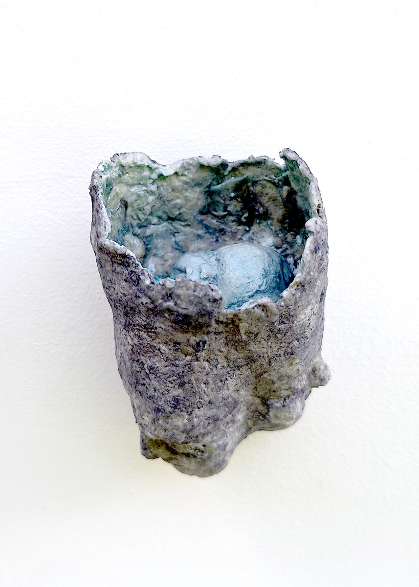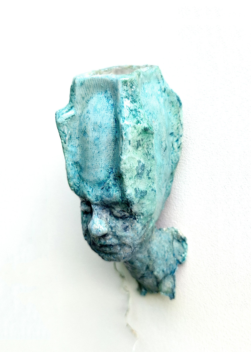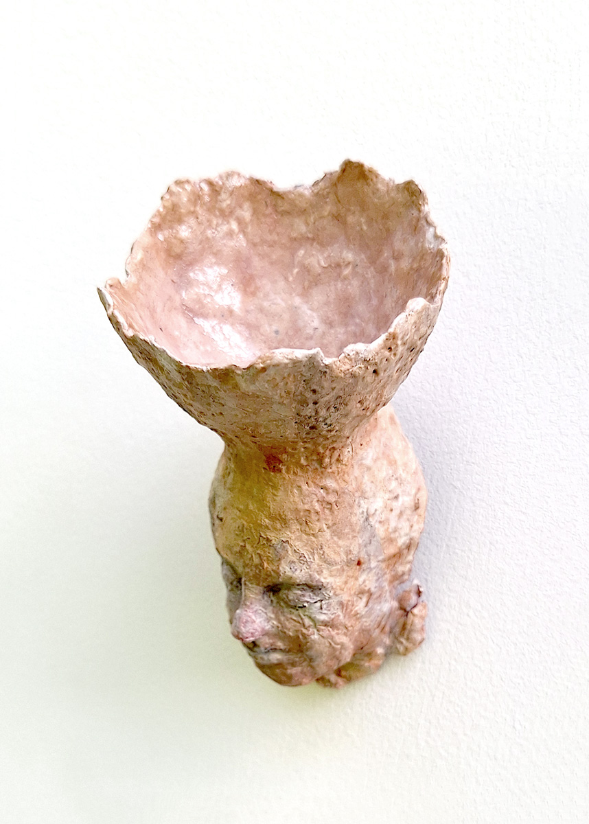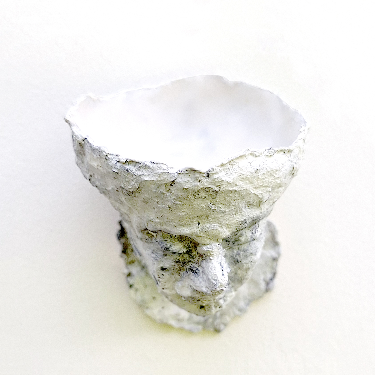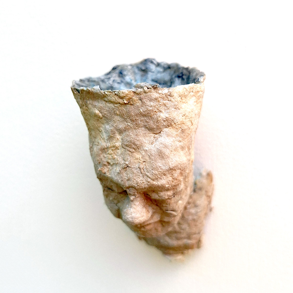 My installation ‘Water Bearers’ consists of miniature heads, each carrying a vessel of water in its own unique way. Paper and water are essential elements in the creation of these figures.