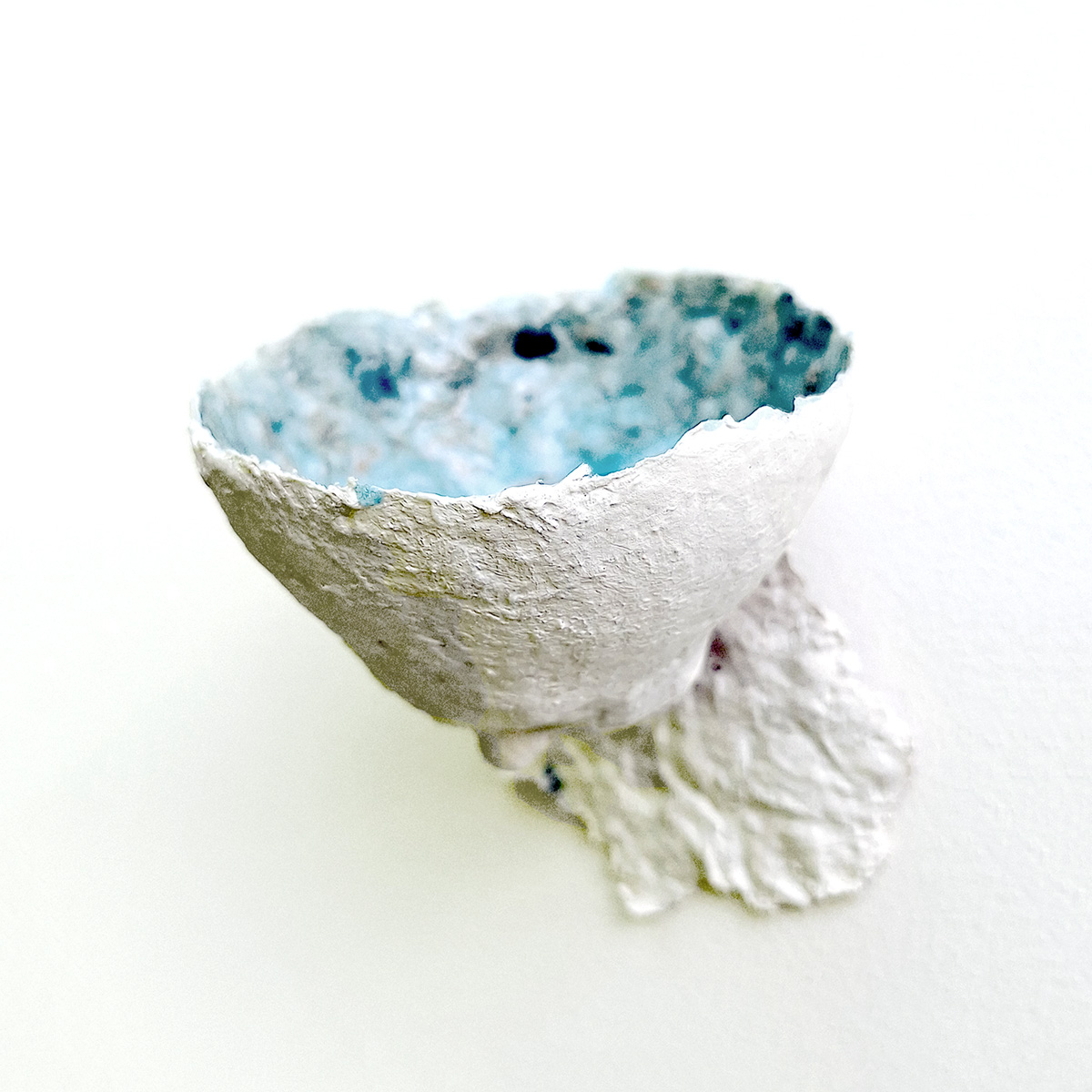 Mijn installatie ‘Waterdragers’ bestaat uit miniatuurkopjes die watervaten dragen, ieder op een eigen unieke manier. Papier en water zijn essentieel voor het produceren van deze waterdragers.