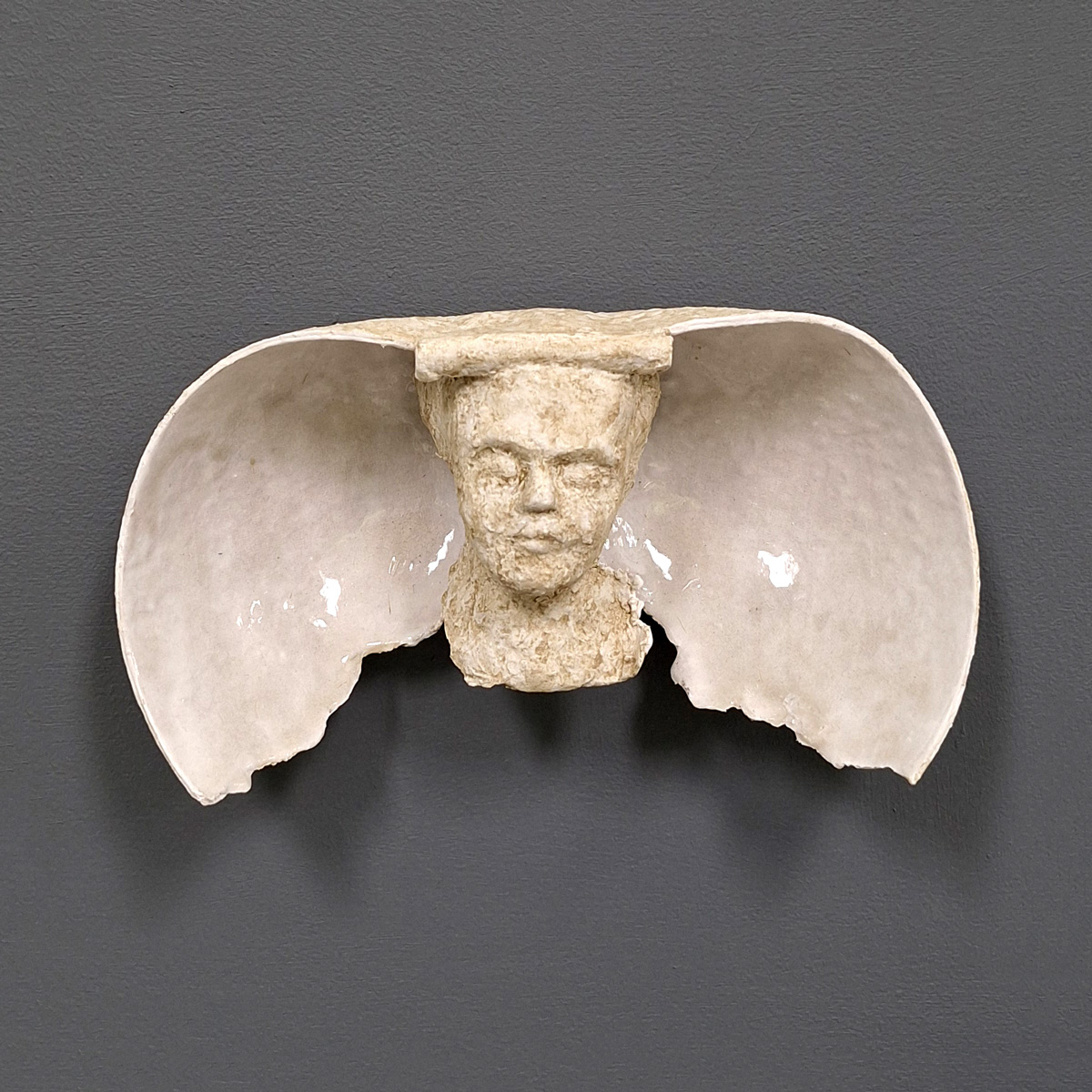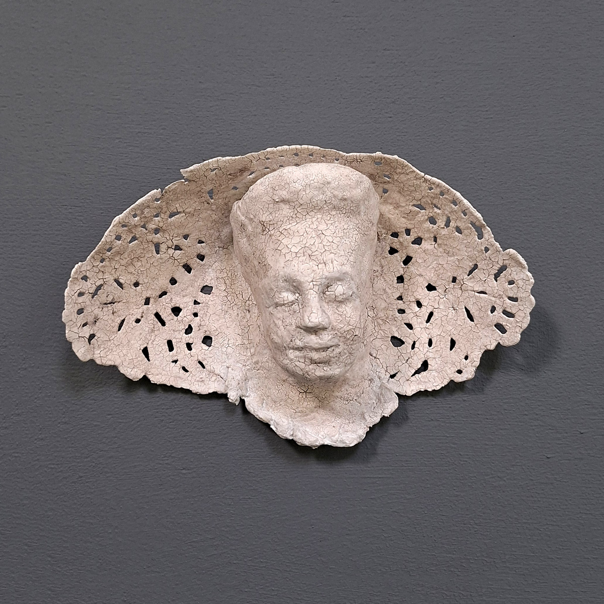 In Zeeuwse vezels vertrek ik vanuit concrete vormen uit de Zeeuwse klederdracht van mijn overgrootmoeder, maar laat ik ze los uit hun culturele korset. Wat begint als herkenbaar silhouet, verschuift langzaam naar een vrijere beeldtaal: koppen, maskers, fragmenten, soms monumentaal, soms kwetsbaar. Soms met gesloten vormen, een omhulsel, een helm, een schuilplaats. Door variaties op vormen te gebruiken, geef ik uitdrukking aan de verschillende karakters en verhalen en herinneringen van de vrouwen die deze hoofdtooien droegen. Elk stuk is een eerbetoon aan hun individualiteit en kracht, een ode aan vrouwen als mijn overgrootmoeder, maar ook aan het materiaal zelf.